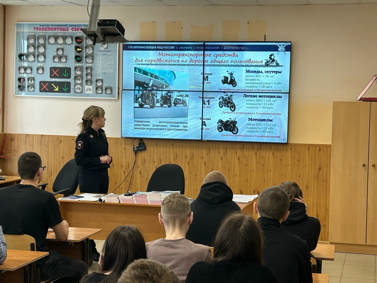 15 апреля 2026 года сотрудники Госавтоинспекции Западнодвинского района провели для студентов профилактическую беседу, посвящённую правилам безопасного управления мототехникой и электросамокатами.