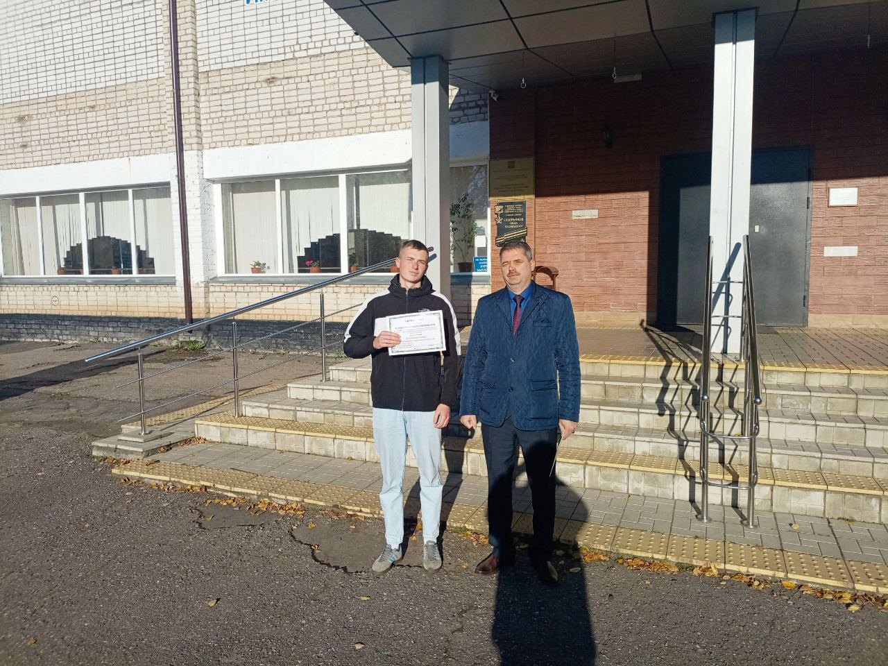 Утро новой рабочей недели в нашем колледже началось с традиционной линейки, посвященной поднятию флага Российской Федерации и исполнению гимна России.  Директор колледжа Новиков Р.М. вручил диплом за 1 место в региональном конкурсе бизнес-проектов «Молодые аграрии Тверской области и их наставники». Победителем стал наш талантливый студент, который проявил себ