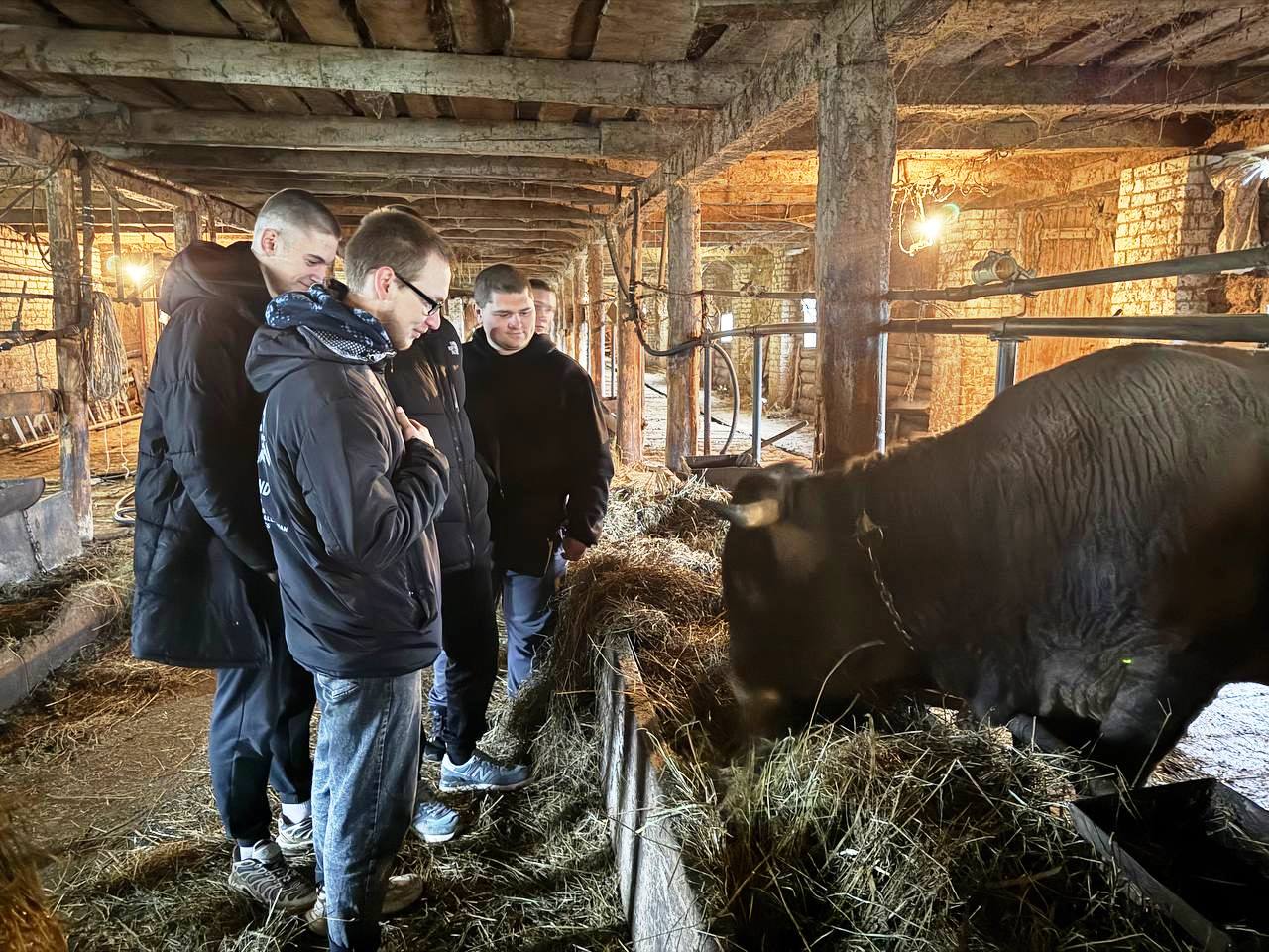 Он подробно объяснил, что основная деятельность хозяйства — это разведение молочного крупного рогатого скота и производство сырого молока. Студенты узнали о том, как проходит уход за коровами, какие особенности кормления и выращивания животных, а также о том, как осуществляется сбор и хранение молока, его первичная переработка.