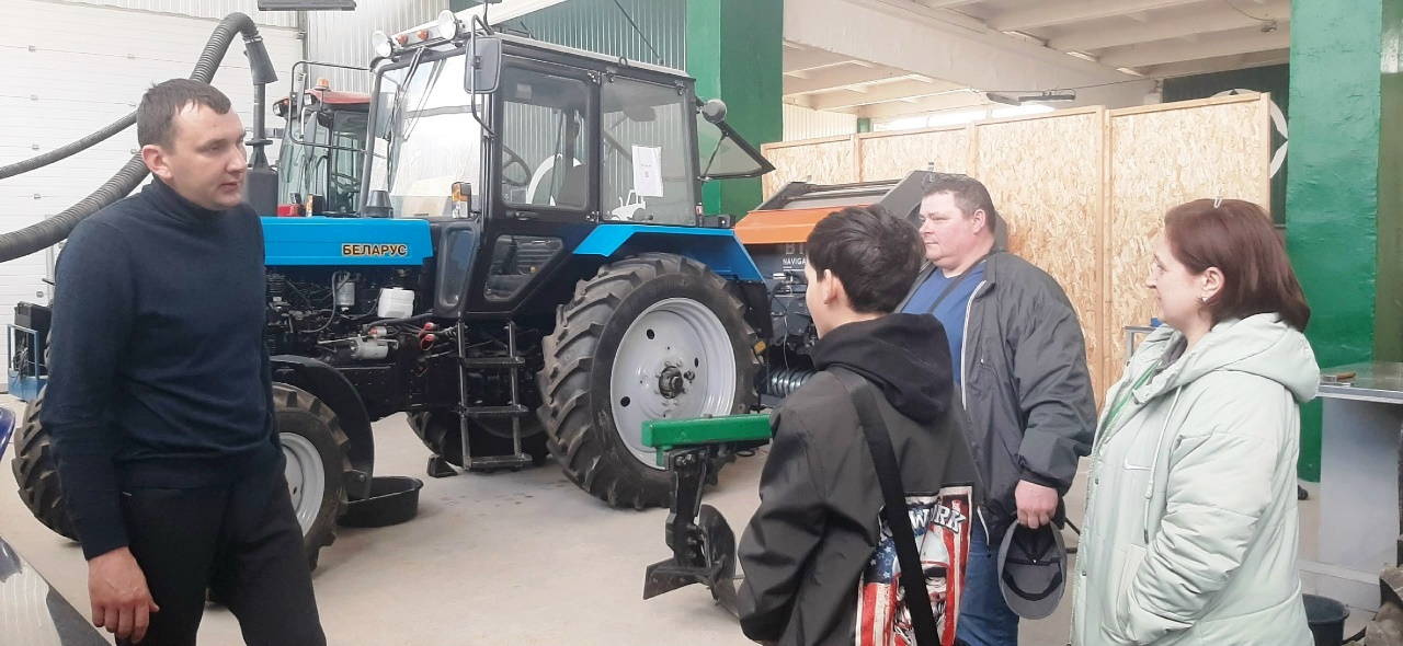 Иван Олегович наглядно показал технологические операции, которым обучаются наши студенты. Для школьников подготовили мастер-класс по ежедневному техническому обслуживанию трактора Беларус 2123.4, включающий правильную последовательность запуска, а также демонстрацию профессиональной проверки.