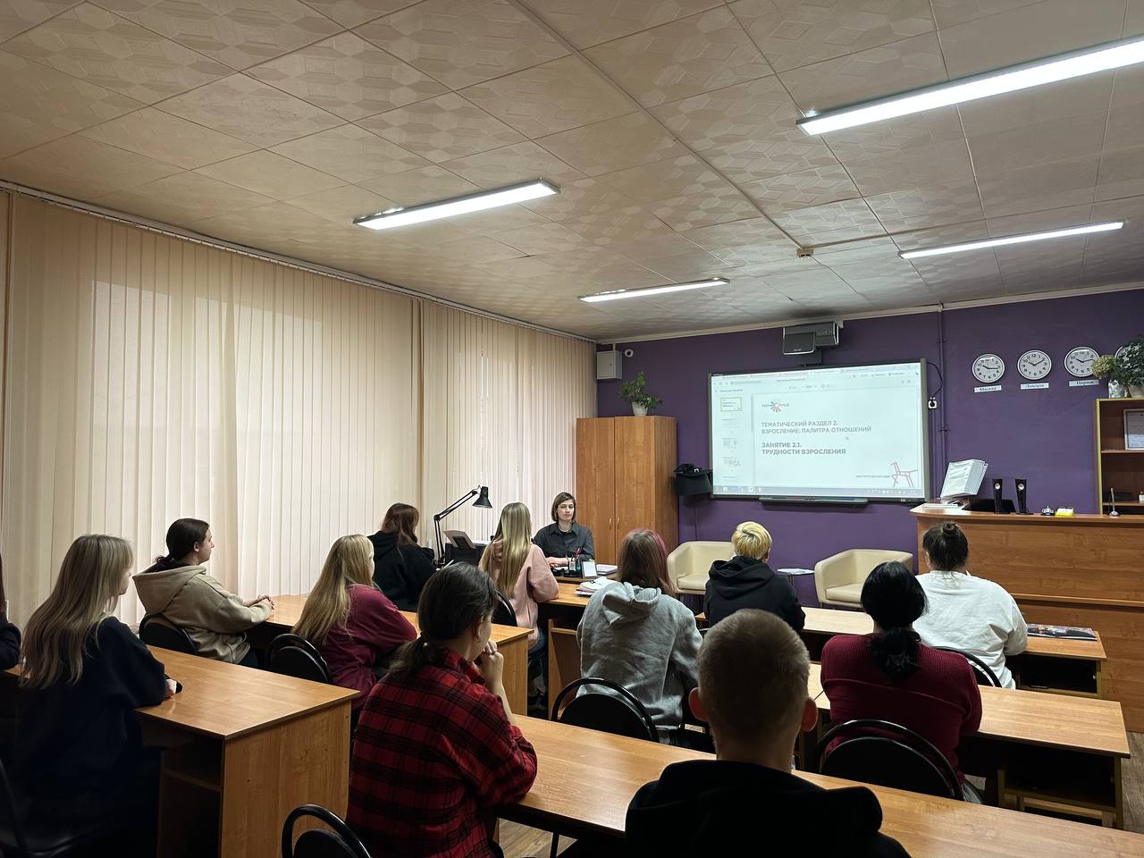 На занятии педагоги вместе со студентами обсуждали этику семейного общения — взаимопонимание, сопереживание, терпимость, уступчивость и доброжелательность. Особое внимание было уделено умениям слышать и слушать друг друга, принимать разные точки зрения и идти навстречу компромиссам, что является основой крепких семейных отношений.